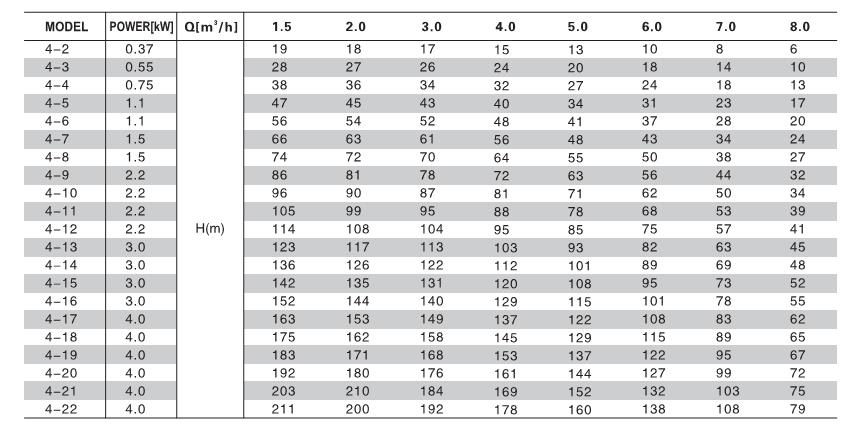| MODEL | PHASE | HP | KW | H(m) | M3 /h |
